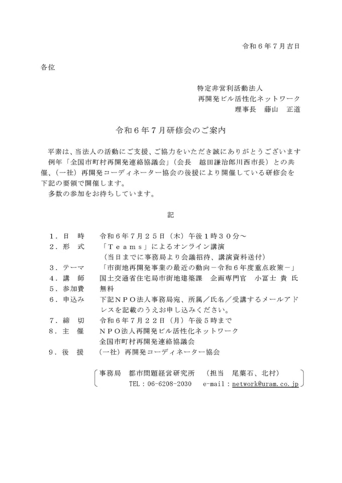 後  援:一般社団法人 再開発コーディネーター協会