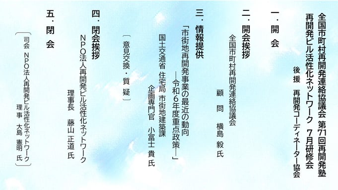 共  催:全国市町村再開発連絡協議会